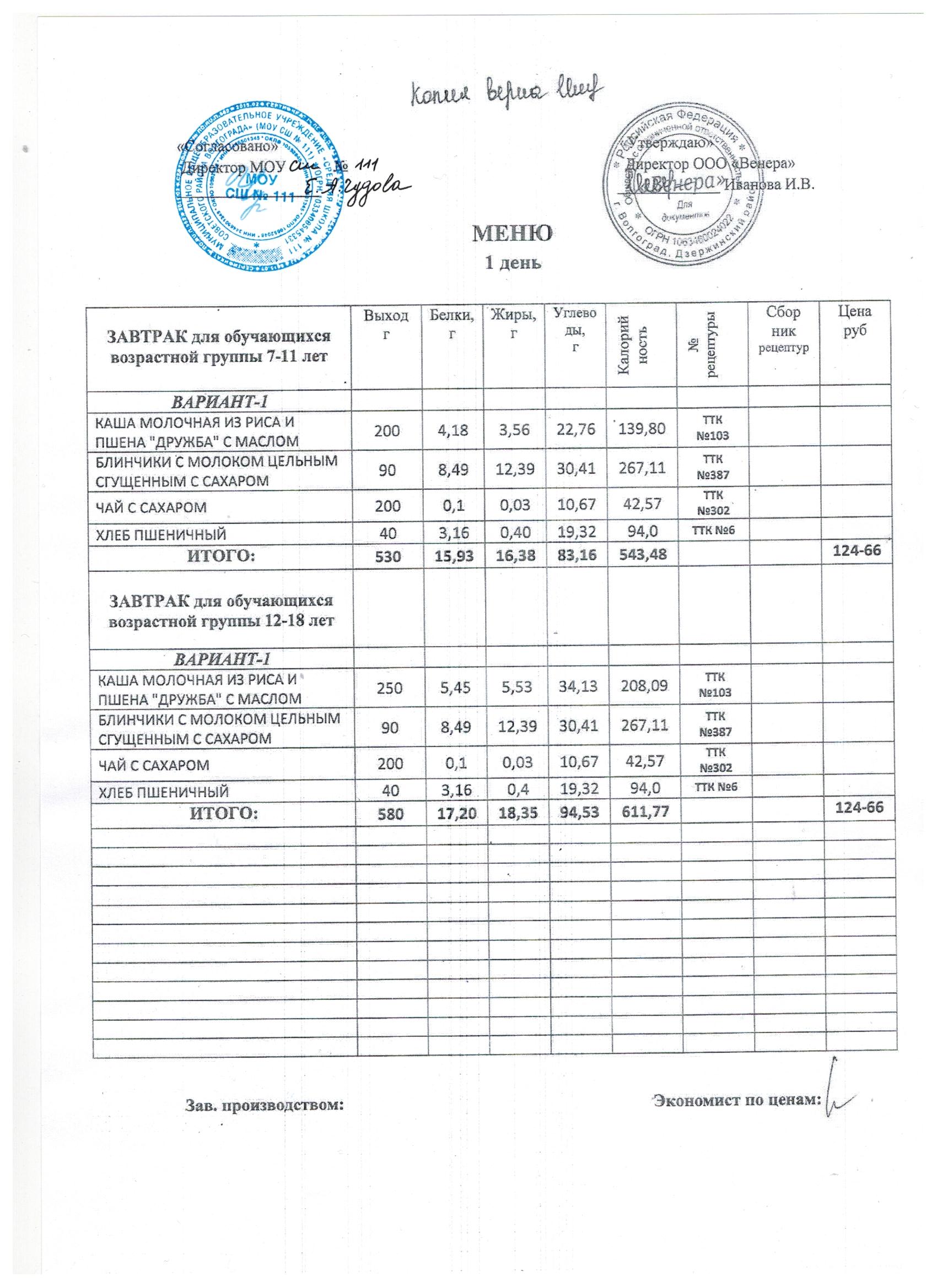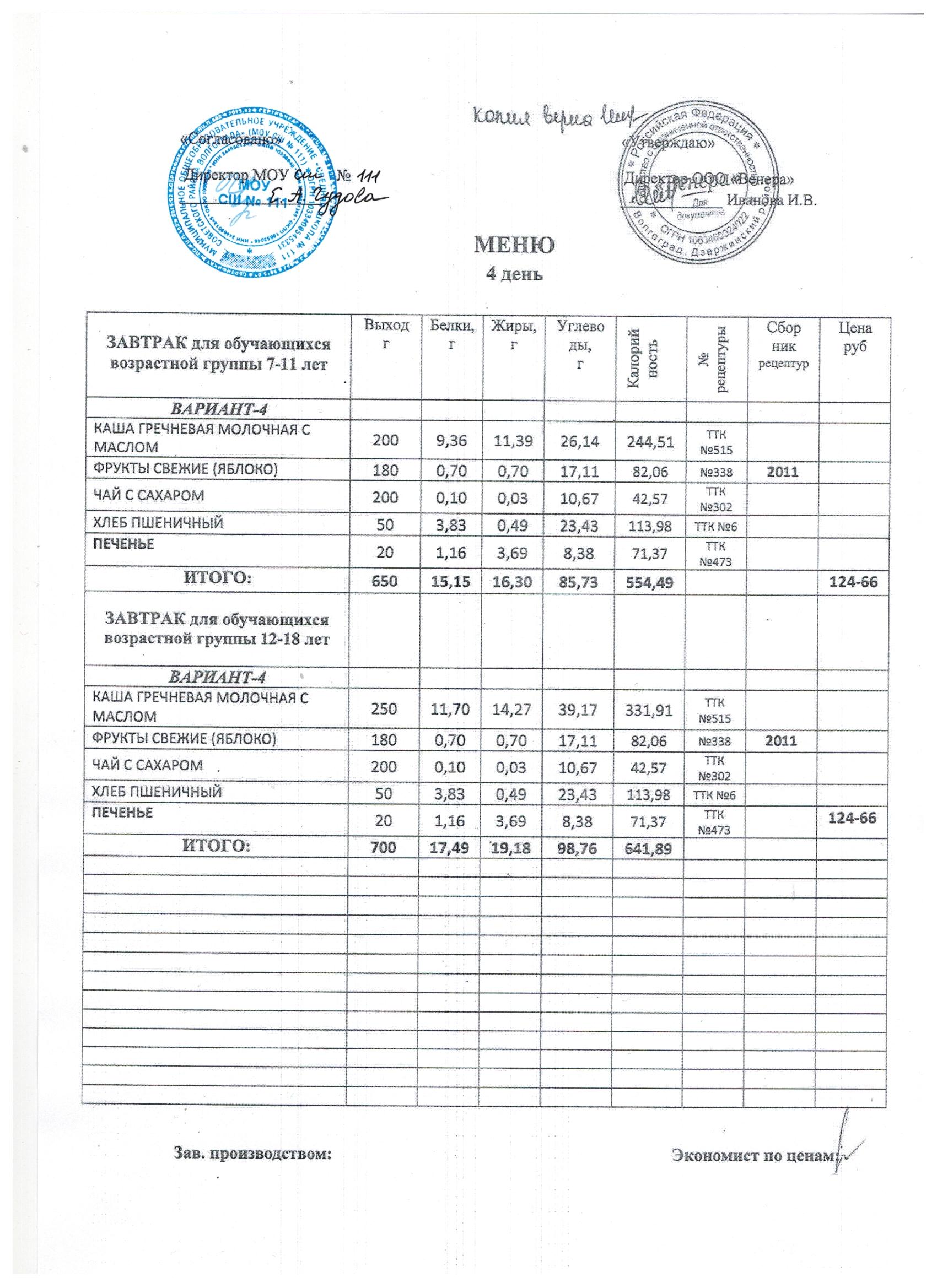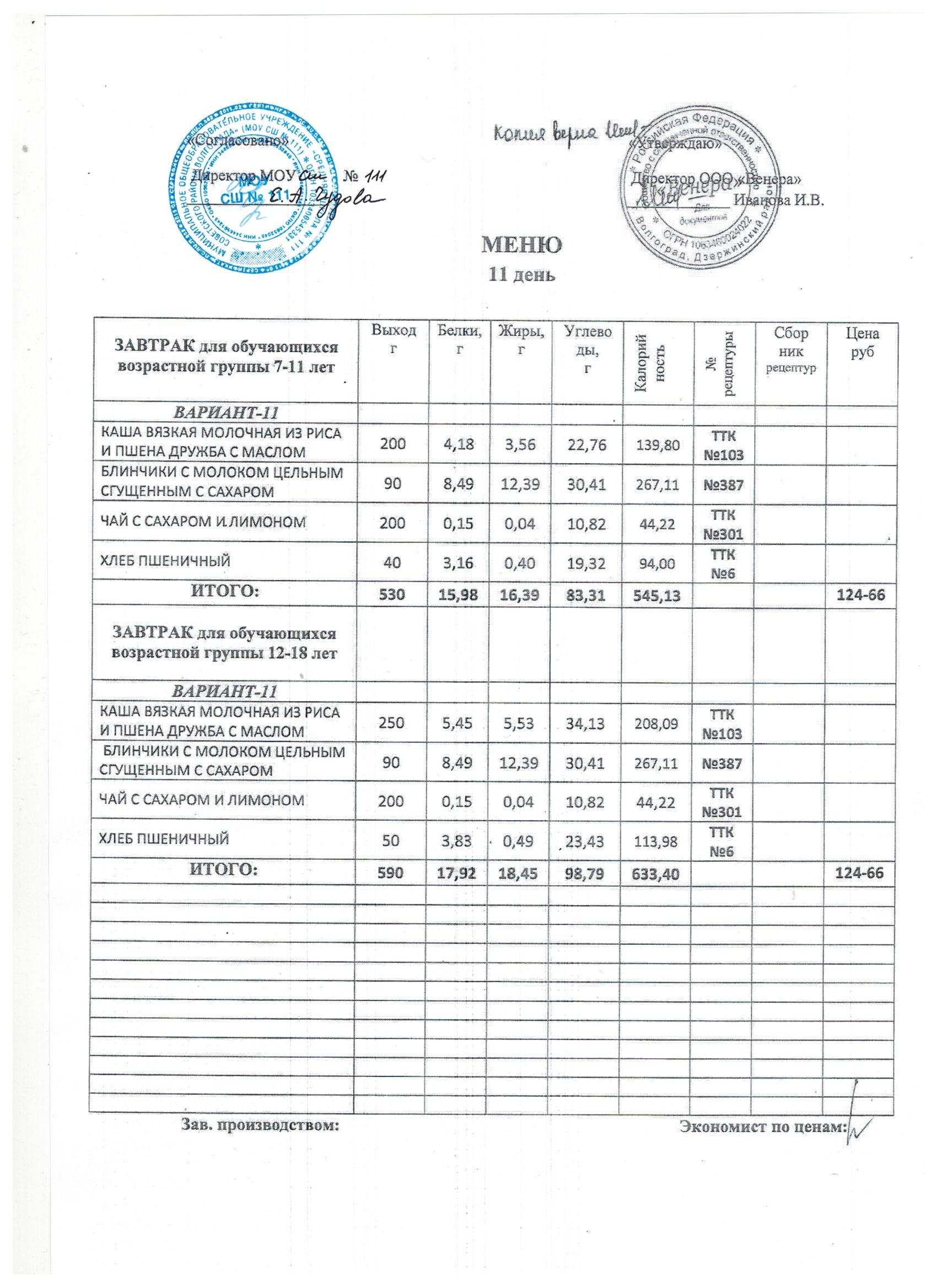 Питание в МОУ СШ № 111 осуществляет ООО «ВЕНЕРА»на основании муниципального контракта № 111/25/1 от 13.01.2025г. Директор: Иванова Ирина Валентиновна д. 39Б, офис 19 телефон: 8(8442) 48-32-57