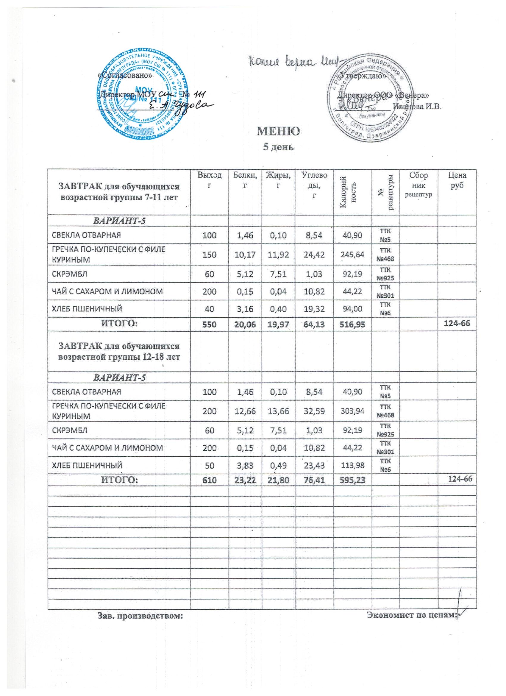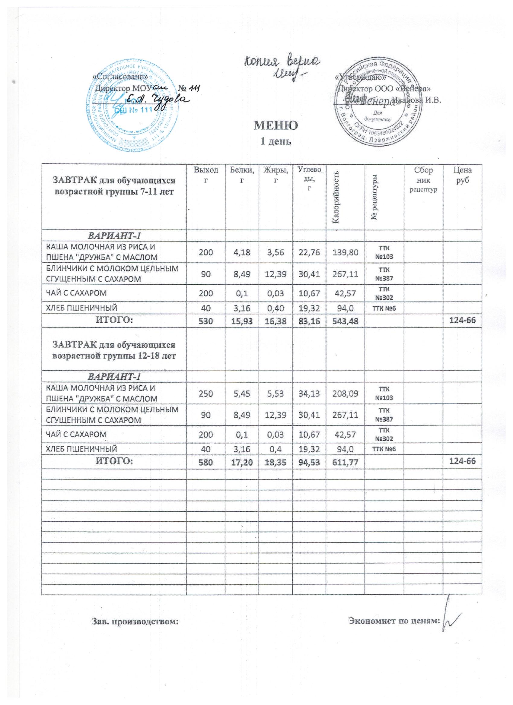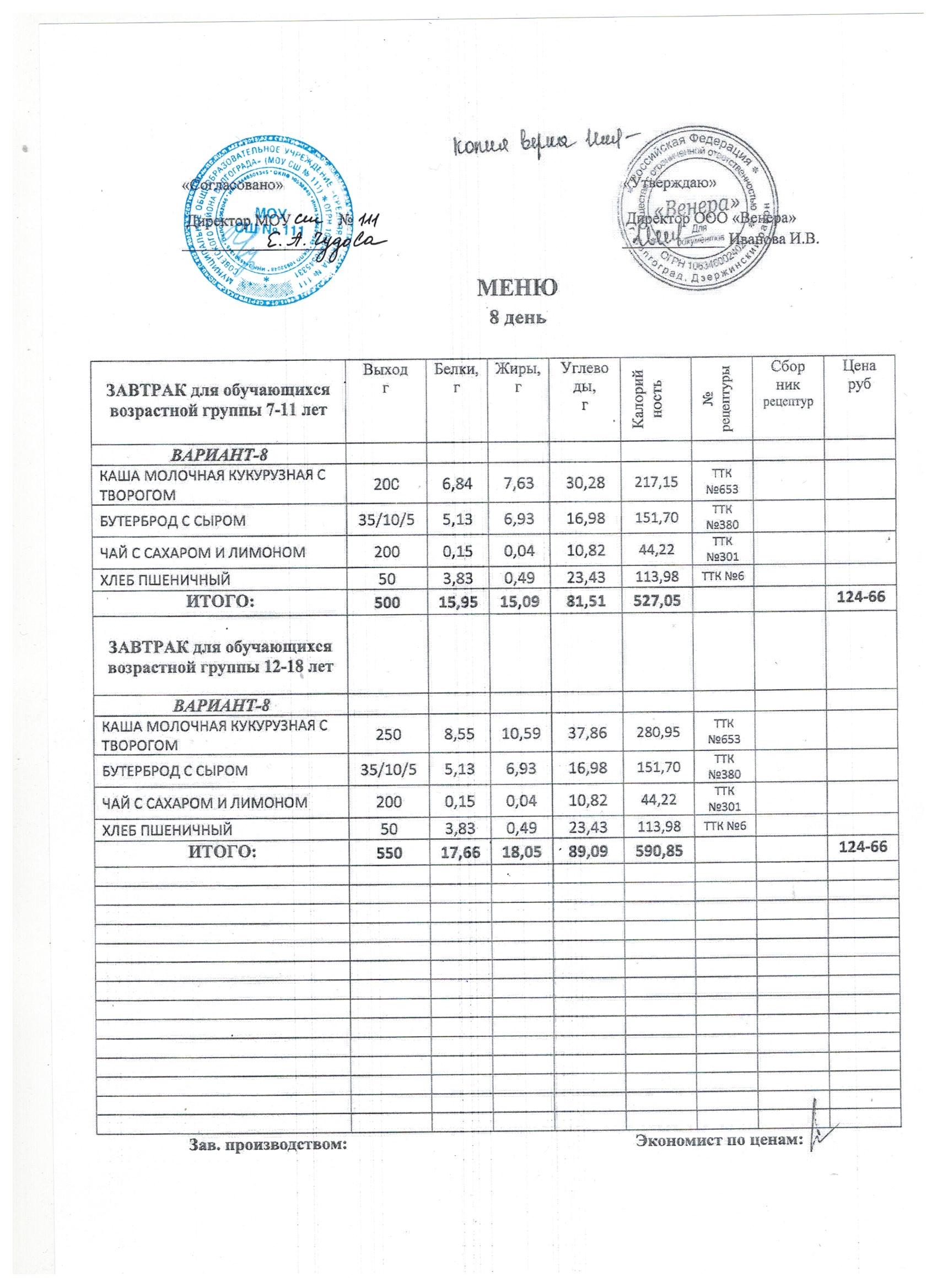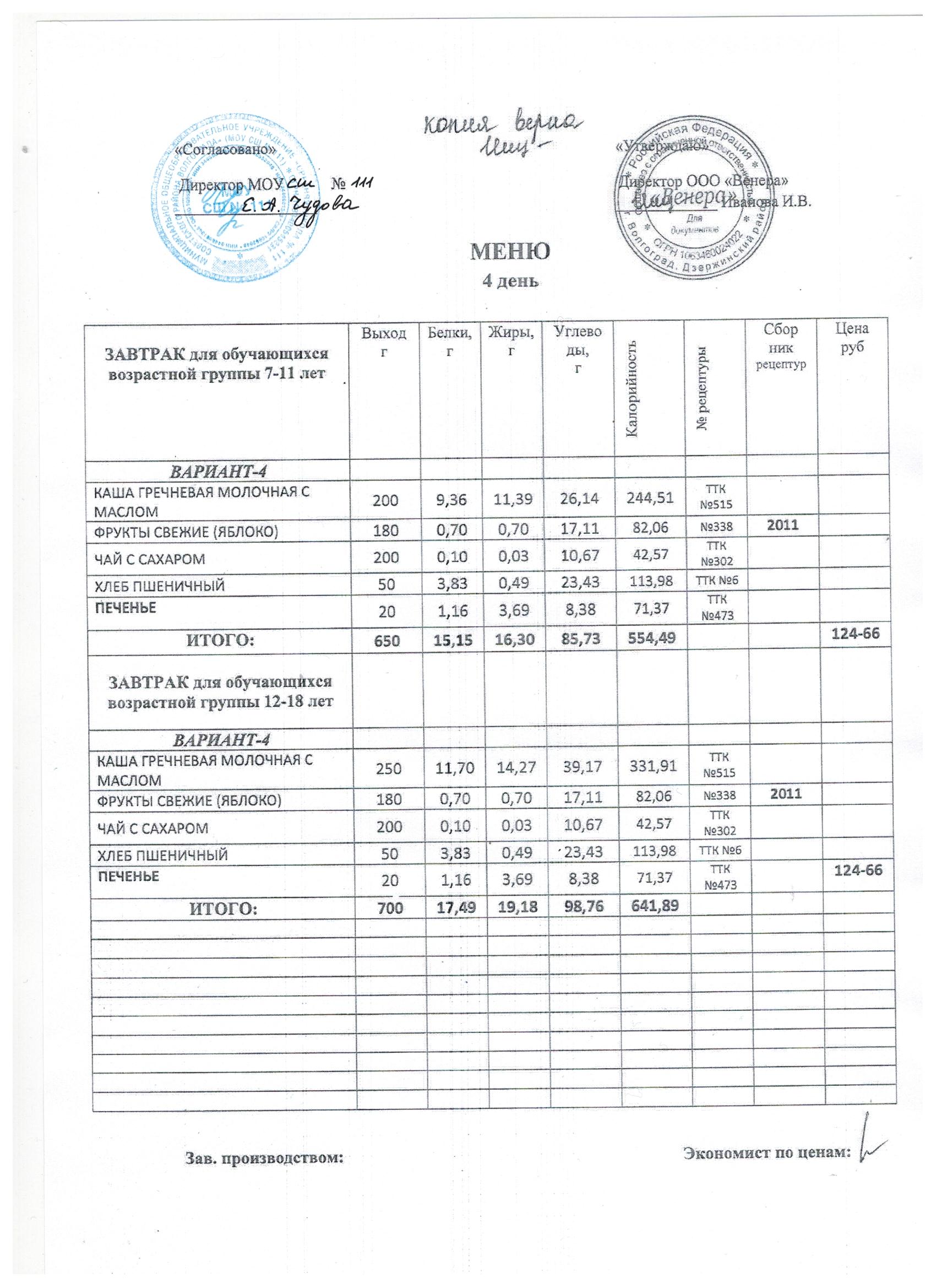Питание в МОУ СШ № 111 осуществляет ООО «ВЕНЕРА»на основании муниципального контракта № 111/25/1 от 13.01.2025г. Директор: Иванова Ирина Валентиновна д. 39Б, офис 19 телефон: 8(8442) 48-32-57