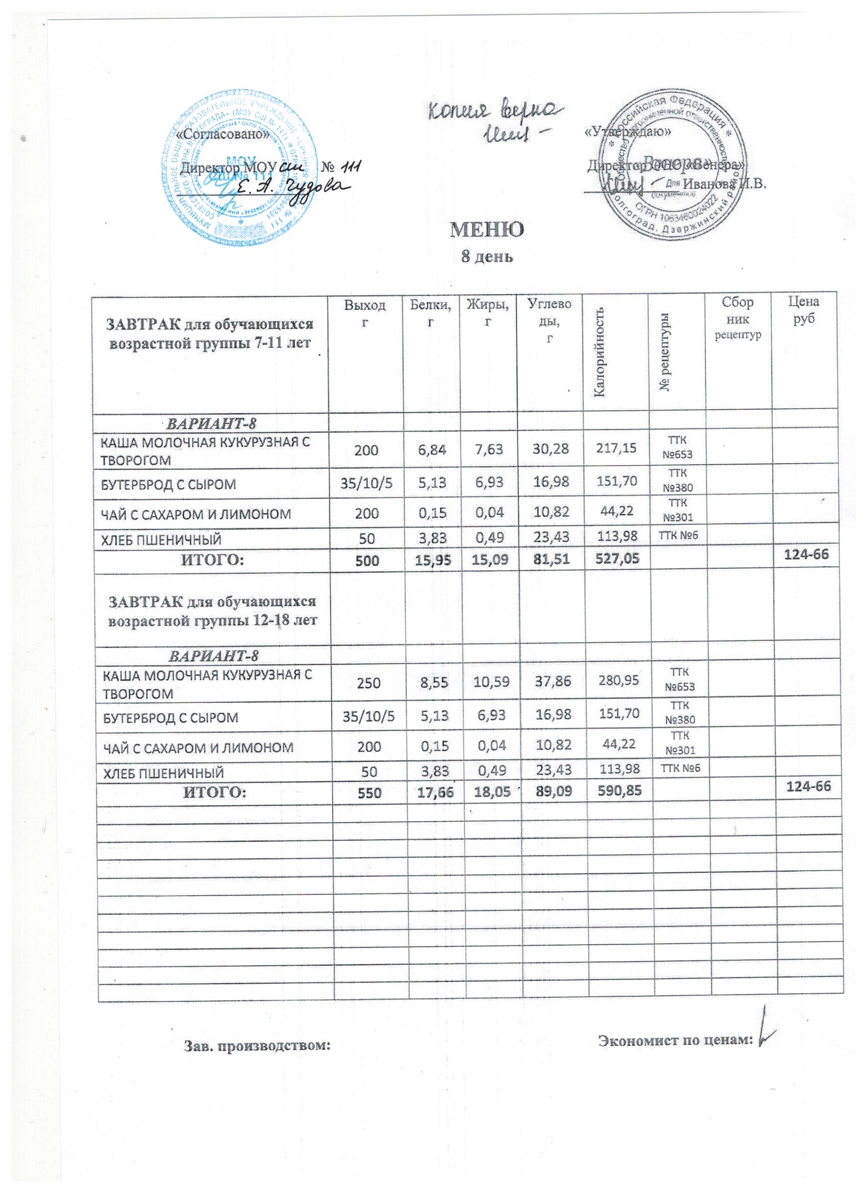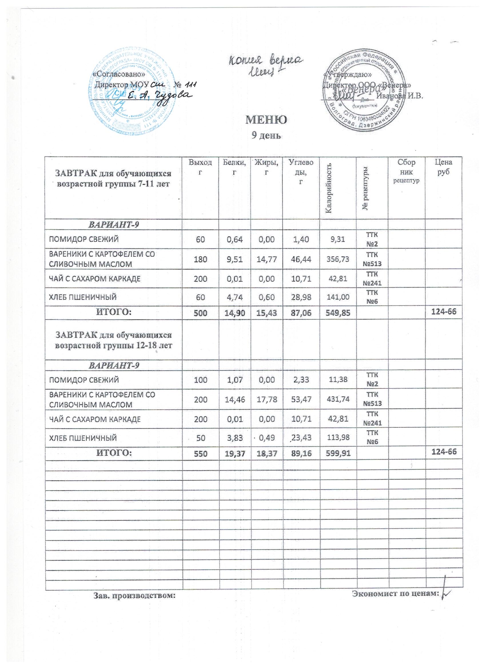 - Ежедневные меню школы соответствуют утвержденному двенадцатидневному меню. По составу и выходу блюд, соответствию рецептуры приготовления блюд технологическим картам, наличие меню – раскладок и организации дополнительного питания. Технологические карты блюд и кулинарных изделий соответствуют требованиям СанПин 2.4.5.2409-08.